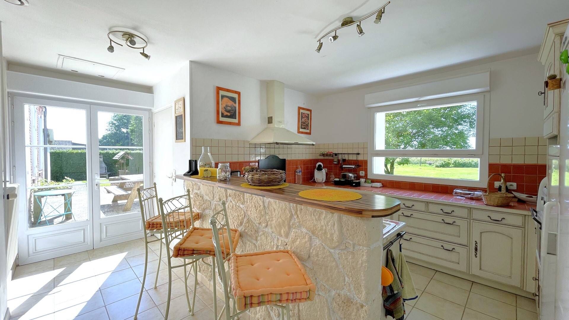 alt="Maison de caractère à vendre en Normandie : profitez d'une cuisine aménagée et équipée avec accès direct à une terrasse." title="Maison de caractère à vendre en Normandie : profitez d'une cuisine aménagée et équipée avec accès direct à une terrasse."/>