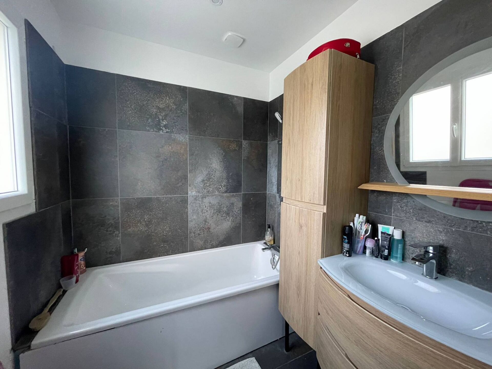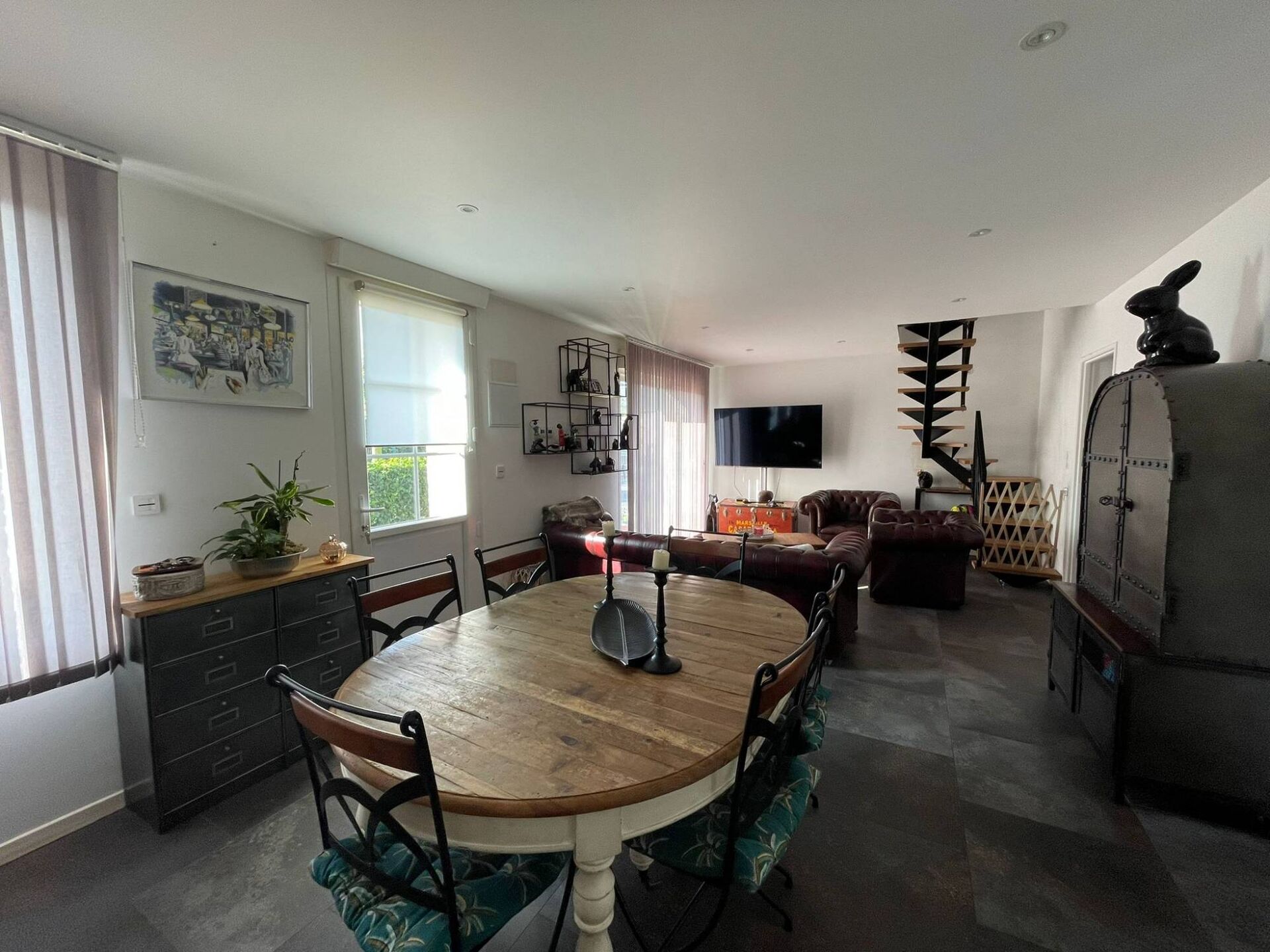 Les huisseries en PVC double vitrage et en aluminium assurent une excellente isolation, contribuant au confort de cette maison rénovée avec soin.