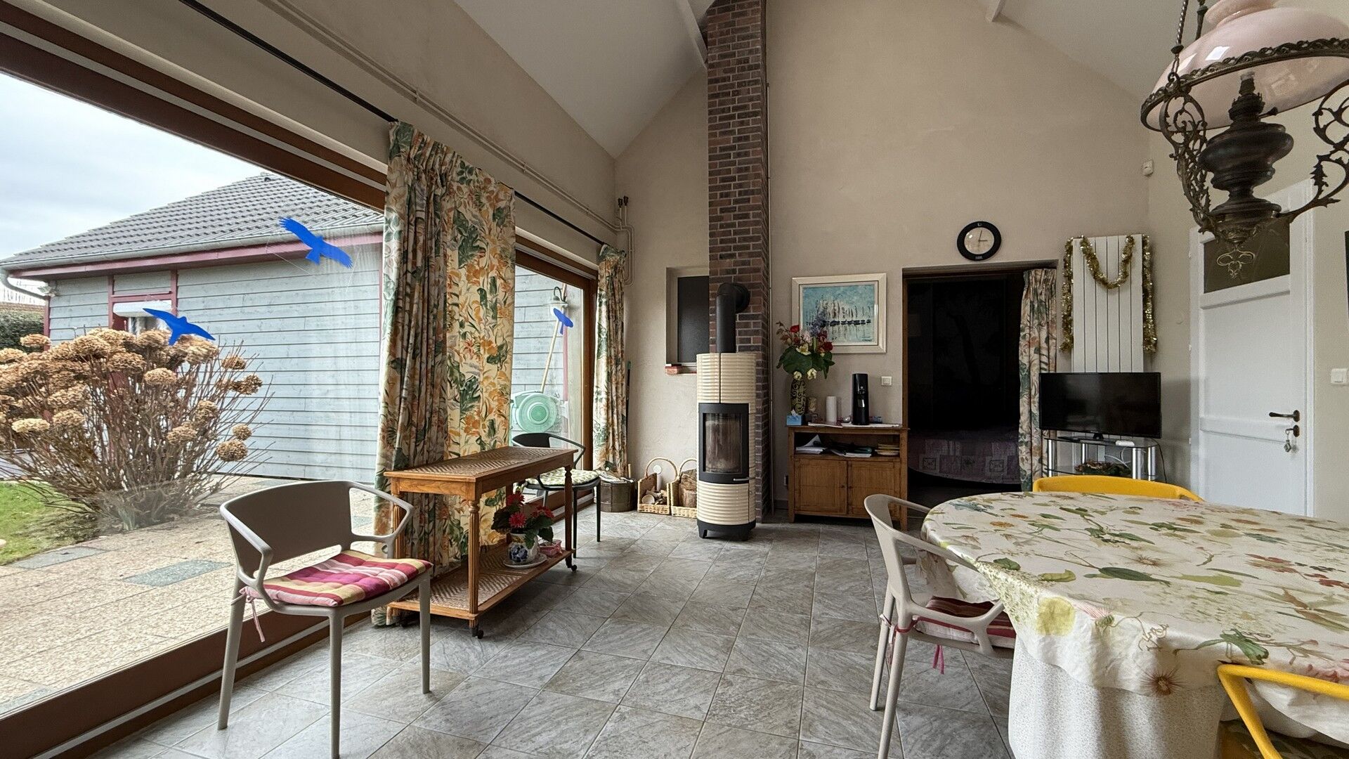alt="Un second salon de 23 m² avec poêle à bois et toit cathédrale apporte un volume remarquable et lumineux." title="Un second salon de 23 m² avec poêle à bois et toit cathédrale apporte un volume remarquable et lumineux."/>